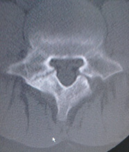 多くは身体が柔らかい中学生頃に、ジャンプや腰の回旋を行うことで腰椎の後方部分の椎弓の部分で骨の連続性が断たれてしまい、椎体と椎弓が離れてしまった状態を「腰椎分離症」といいます。