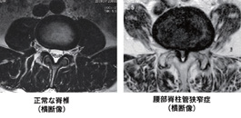 脊柱管は背骨、椎間板、関節、黄色靱帯などで囲まれた脊髄の神経が通るトンネルです。歳をとると背骨が変形したり、椎間板が膨らんだり、黄色靱帯が厚くなって神経の通る脊柱管が狭くなって(狭窄)、それによって神経が圧迫され、神経の血流が低下して脊柱管狭窄症が発症します。
